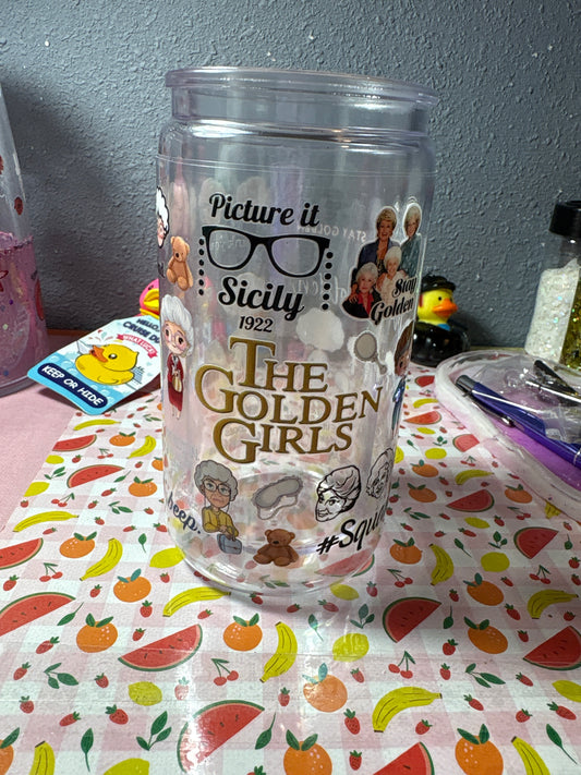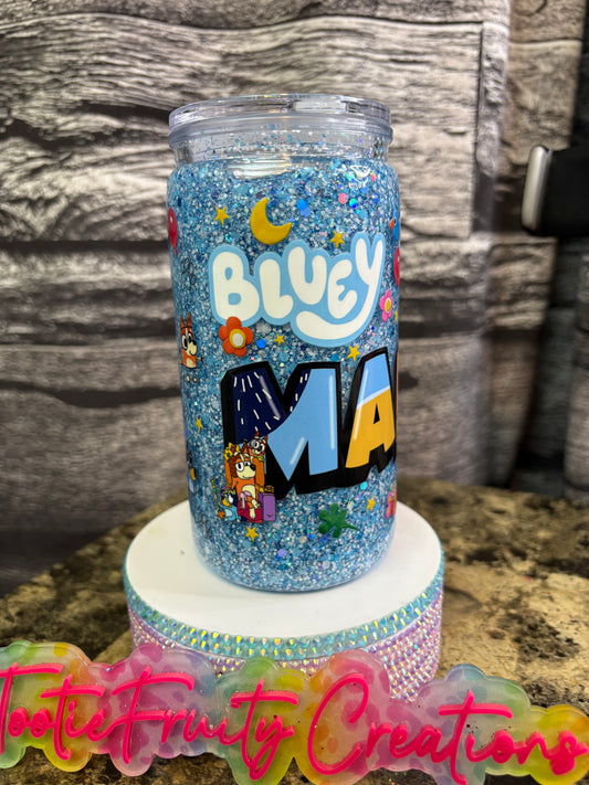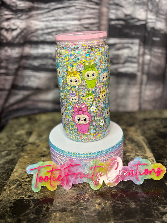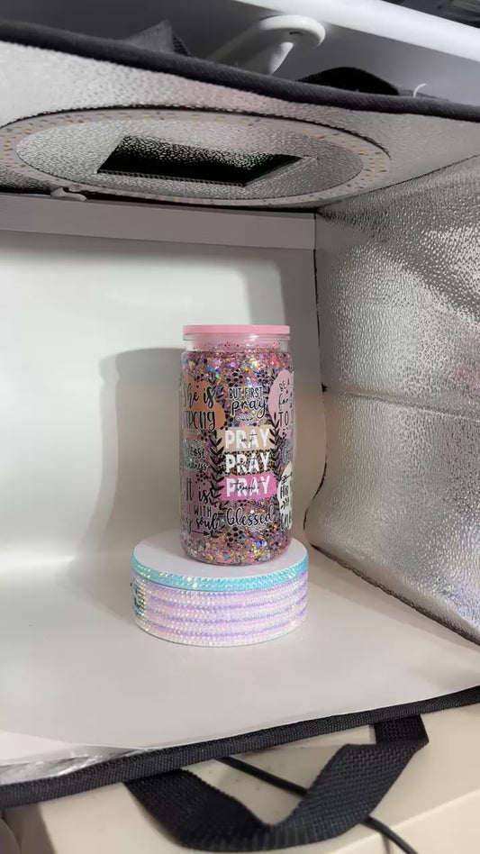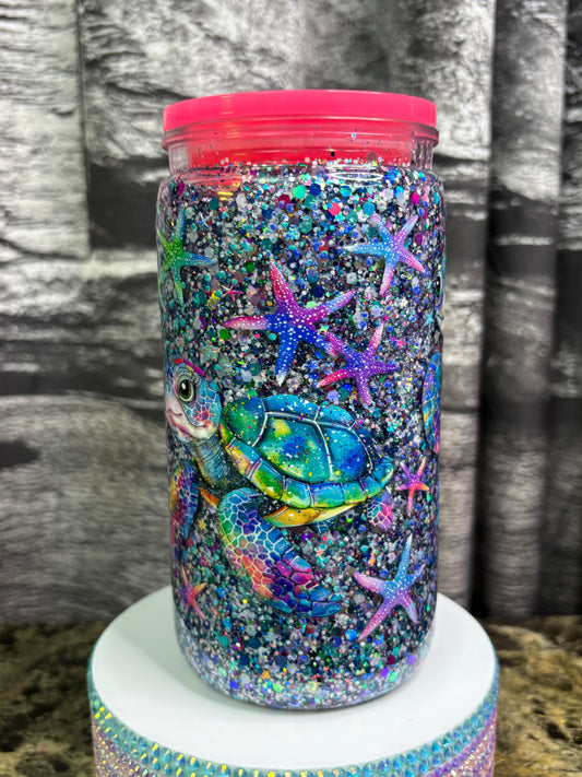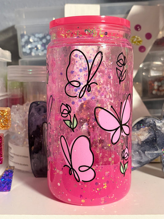 16oz Glass Can Snow Globe Tumbler - Glitter & Floral Bee Design