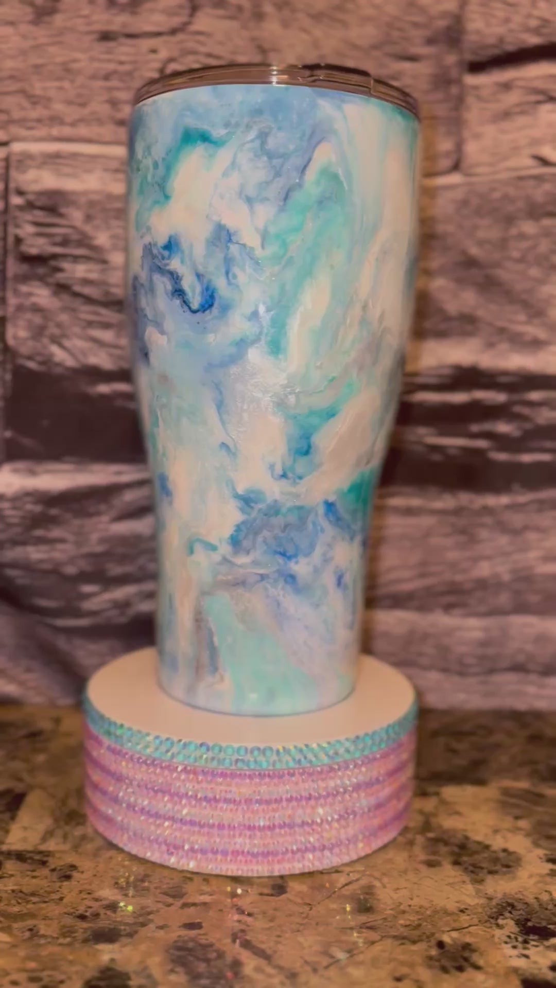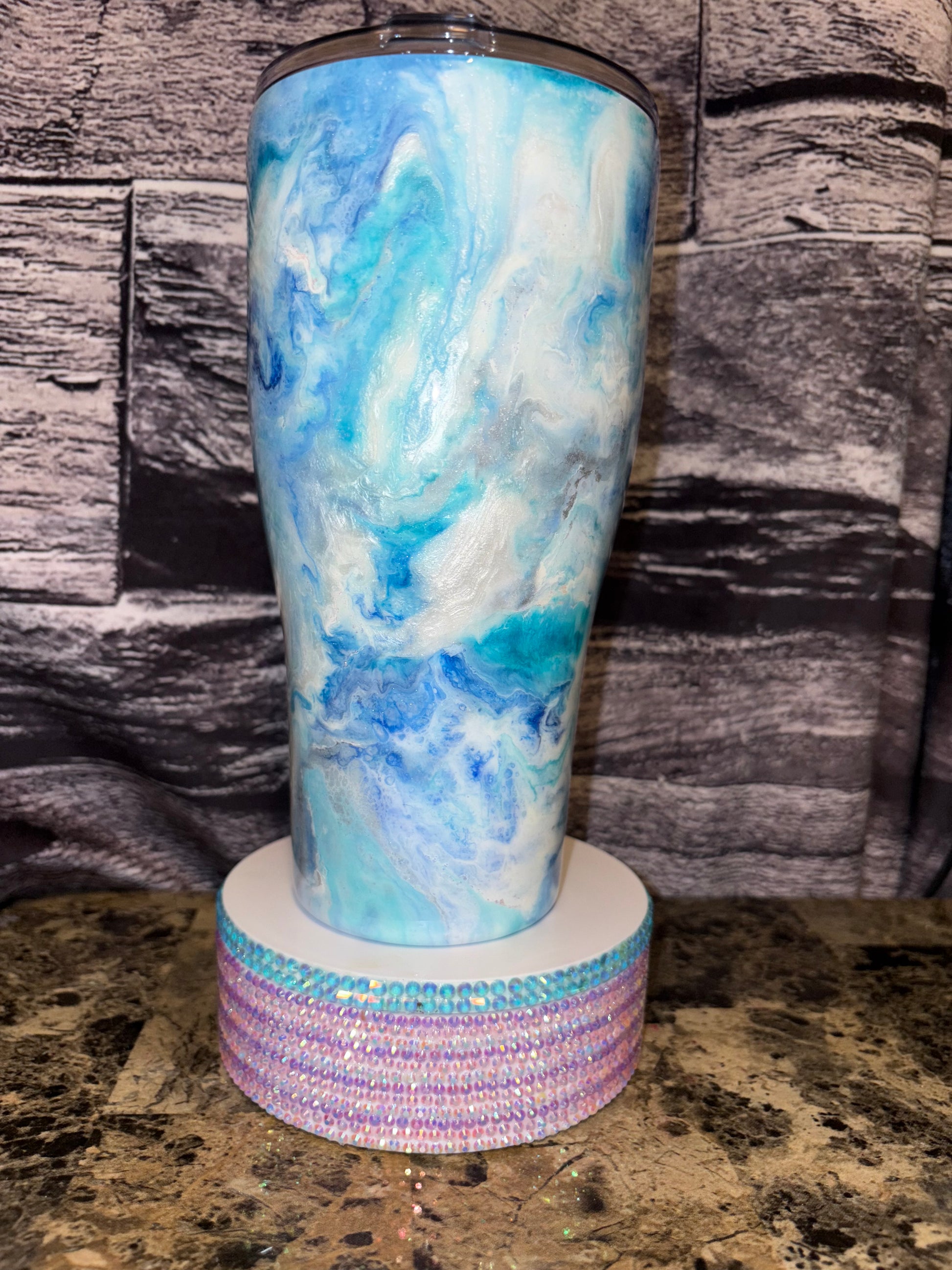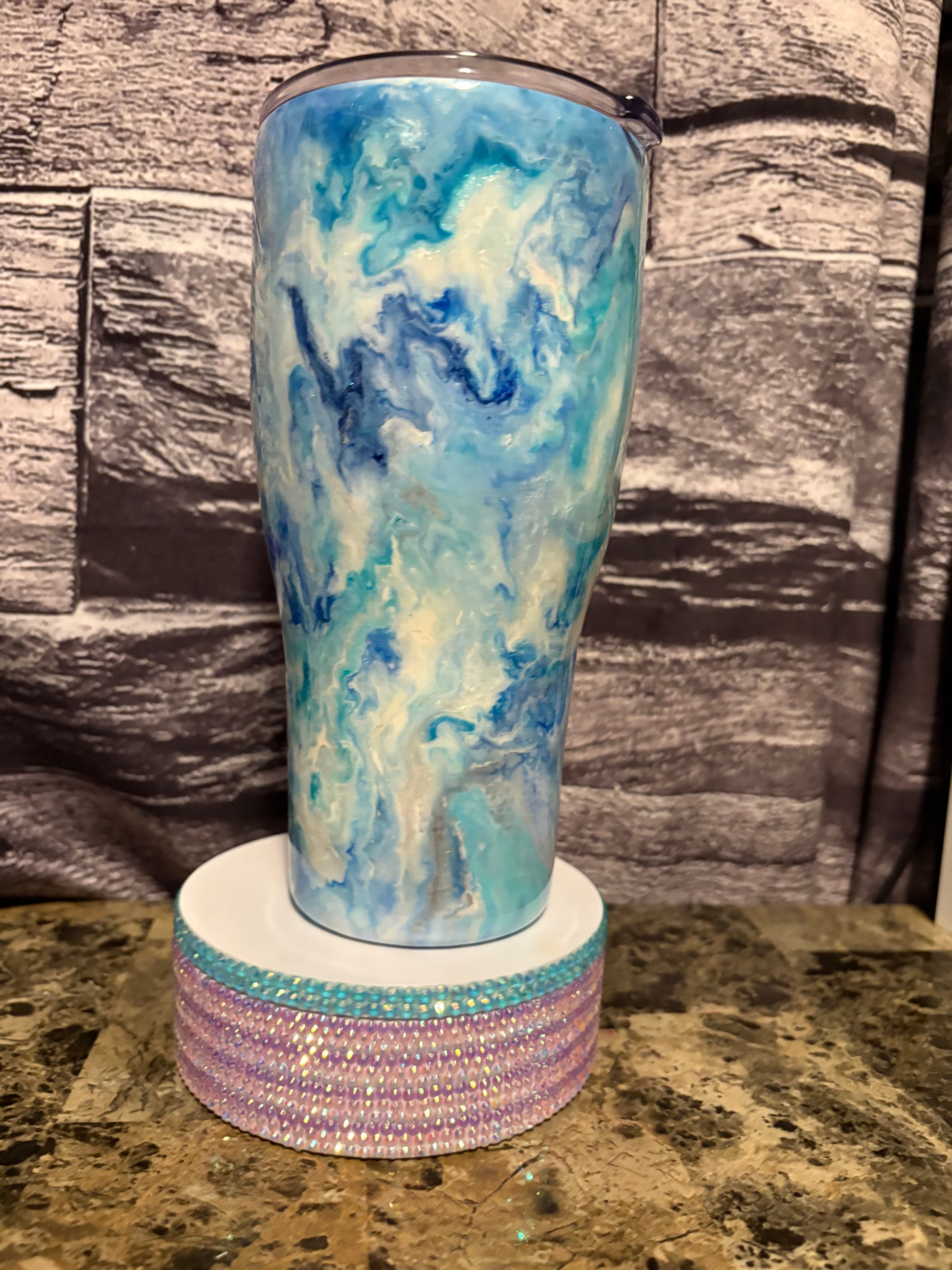 Check out my latest project! This beautiful tumbler features a stunning blend of blue and white hues, creating a mesmerizing marbled effect. Each swirl adds a unique touch, making it one-of-a-kind!